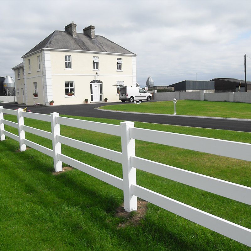 Pagar kuda PVC 3-Rail direka untuk menyediakan kedua-dua keselamatan dan gaya untuk harta ekuestrian anda. Tersedia dalam warna klasik -putih, tan, kelabu, dan krim -pagar ini bukan sahaja meningkatkan estetika landskap anda tetapi juga berdiri ujian masa, memastikan kuda anda selamat dan selesa.