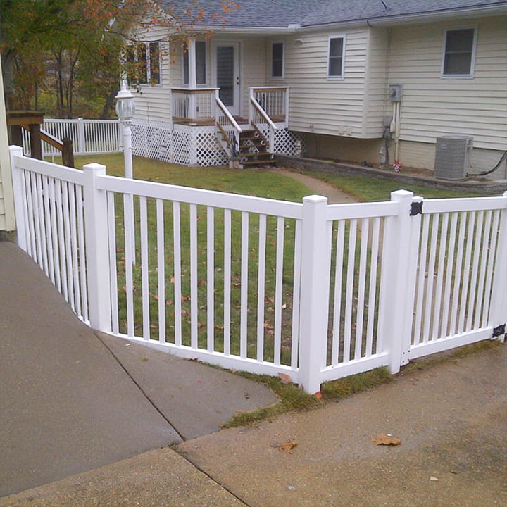 Menampilkan landasan atas dan bawah pra-notched, pagar kami termasuk sisipan aluminium untuk kekuatan tambahan. Setiap piket berukuran 1 1/2 "x 1 1/2" x 40 ", memastikan kedua -dua kekukuhan dan gaya.