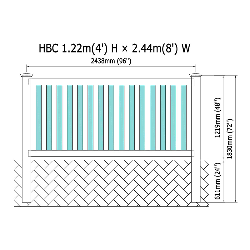 Mempunyai topi New England, rata, atau gothic yang mantap, pagar kami juga termasuk rel pra-notched atas dan bawah untuk perhimpunan lancar. Sisipan aluminium di rel bawah menyediakan kekuatan gred komersial, memastikan umur panjang dan kestabilan. Dimensi piket standard 7/8 "x 3" x 40 "direka untuk jarak yang optimum dan integriti struktur, menjadikan pagar ini pilihan utama untuk kedua -dua estetika dan fungsi.