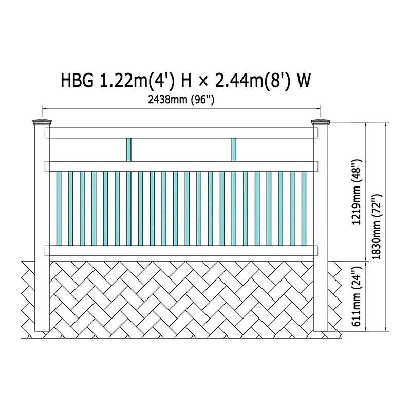 Ketinggian standard kami 48 inci sangat sesuai untuk pelbagai aplikasi, tetapi kami juga menawarkan ketinggian tersuai untuk memenuhi keperluan khusus anda. Setiap bahagian mempunyai lebar standard 96 inci, dengan pilihan untuk lebar yang berbeza sesuai dengan ruang anda dengan sempurna. Pagar ini mempunyai catatan kukuh yang tersedia dalam sama ada 4 "x 4" atau 5 "x 5", dan boleh disesuaikan sehingga 72 inci. Setiap jawatan datang pra-routed untuk pemasangan mudah sebagai garis, akhir, sudut, 3-arah, atau konfigurasi kosong.