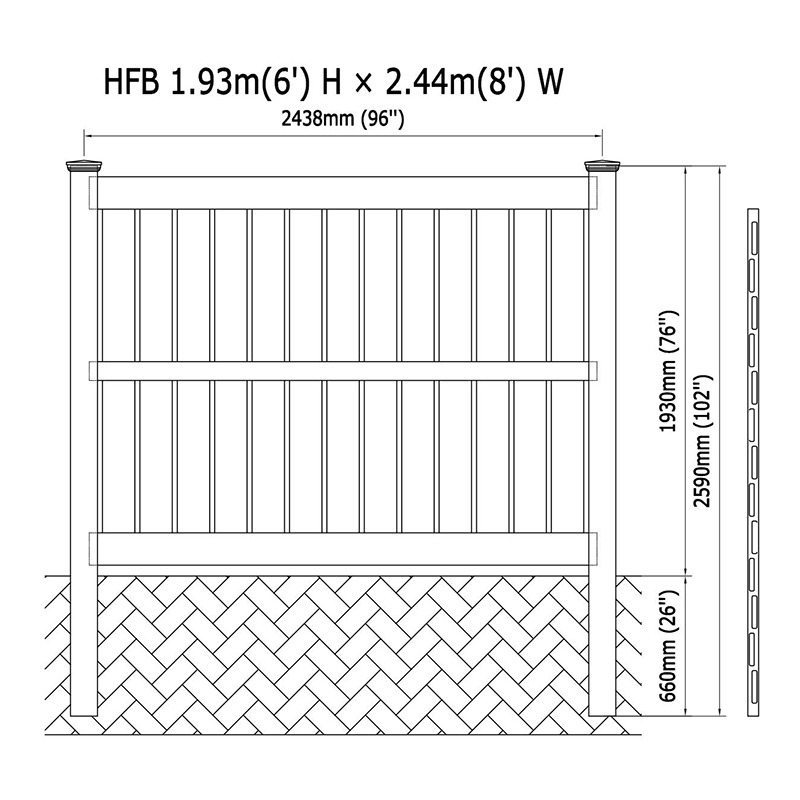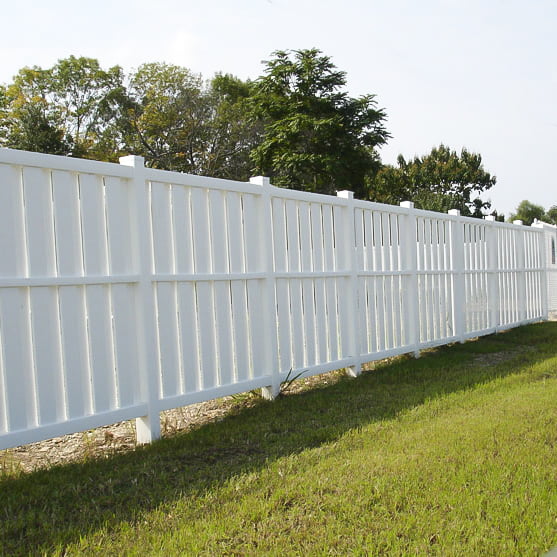 Mempunyai landasan bawah, tengah, dan atas pra-notched, pagar ini direka untuk kekuatan dan kestabilan. Sisipan aluminium di rel bawah meningkatkan kekuatan komersial, sementara piket mengekalkan jarak standard 7/8 "x 6" x 63 ". Dengan pintu yang sepadan juga tersedia, pagar ini merupakan tambahan yang sempurna untuk meningkatkan daya tarikan dan keselamatan harta tanah anda.